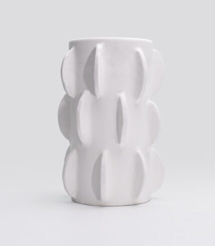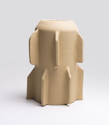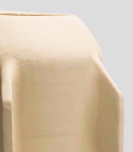 Vase en terre cuite sculpté à la main, une œuvre d’art fonctionnelle alliant des techniques traditionnelles à une touche moderne. Les lignes épurées et lisses offrent un magnifique contraste avec la texture naturelle de la terre cuite.